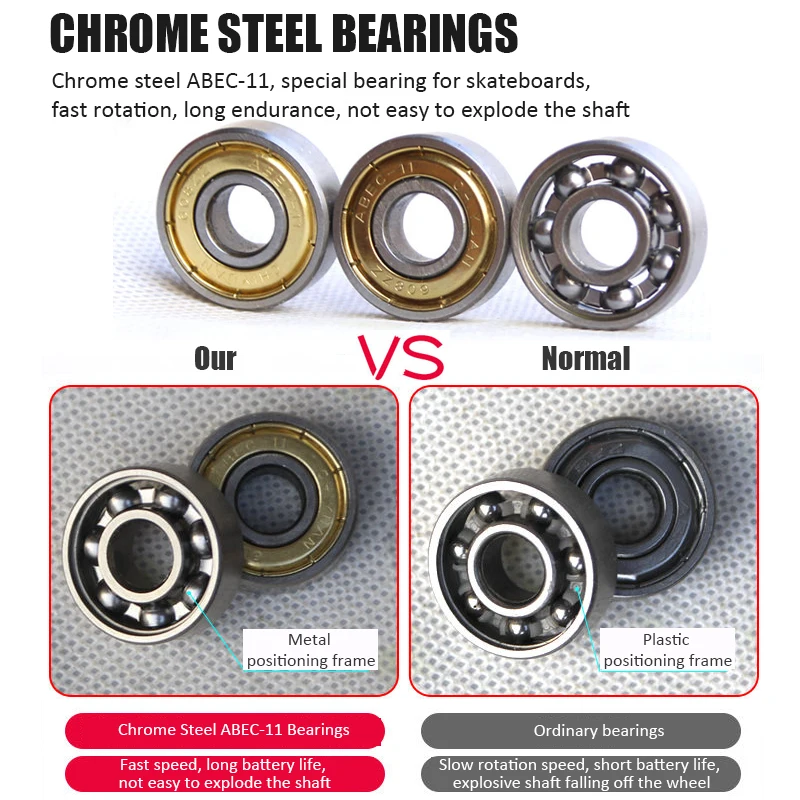 - Bearing: Plastic/Chrome Steel ABEC-7/11 Bearings
